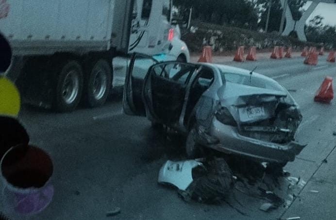Este lunes se registró un aparatoso percance en el que se vio involucrado un vehículo tipo sedán que quedó totalmente destrozado ya que presuntamente fue impactado por una unidad pesada en la autopista 57, sobre el tramo de la Cuesta China, a la altura del monumento a Conín en el municipio de El Marqués.