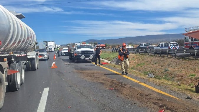 Un choque por alcance se registró en la carretera 57, en el tramo Querétaro–San Luis, a la altura de la Universidad Politécnica de Santa Rosa, donde una pipa que transportaba agua impactó a una camioneta de transporte de personal y la proyectó fuera de la cinta asfáltica.